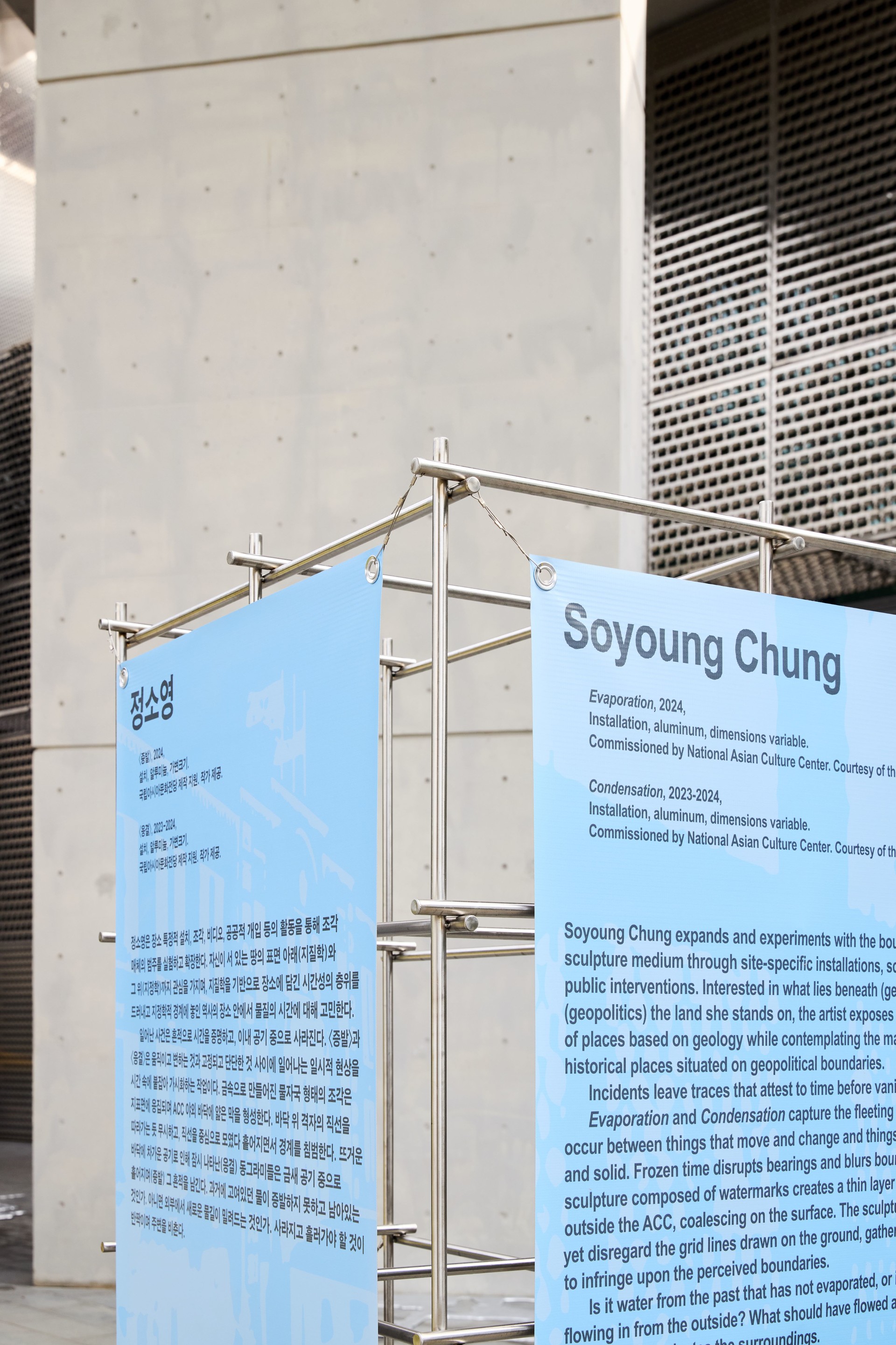 “Reconstructing Sequences” reinterprets the ACC, surrounded by a construction site fence, within the context of the “accumulated events and memories of a place.” The exhibition begins at the “historical site” of the Asia Plaza and the ACC Culture Exchange, where the former Jeollanam-do Provincial Office once stood. Through impression and evaporation, erosion and deposition, low tides and high tides, and drawing and erasing, artists transform “the scene of memory” into a place while viewers create new sequences by physically moving from one place to another. This place transforms into a “field of experience,” encompassing new encounters and events triggered by artworks that change according to the surroundings and weather.