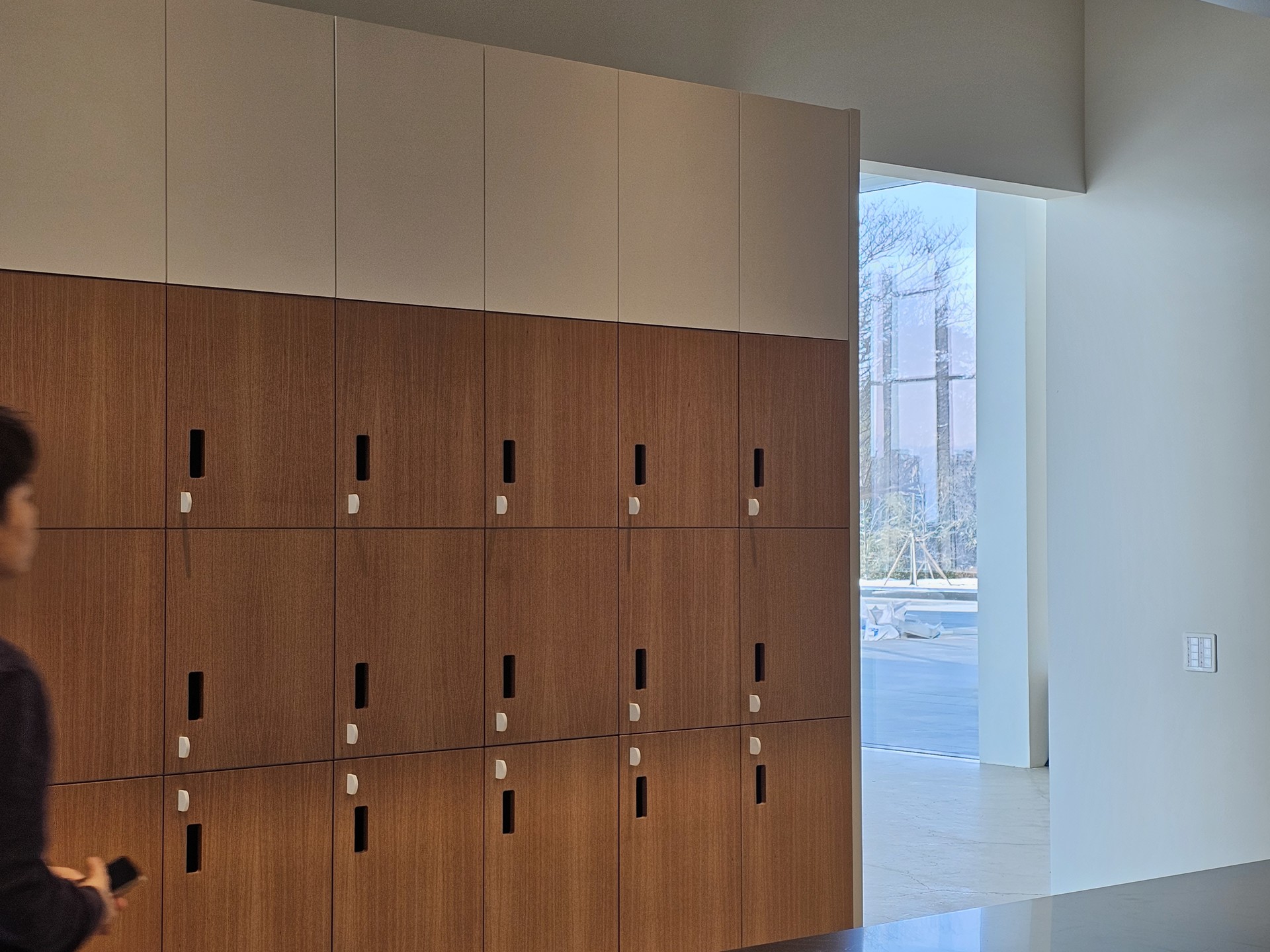 The lockers are located within the storage area of the Solol Art Museum, designed by the office of Richard Meier, renowned for his "white architecture."