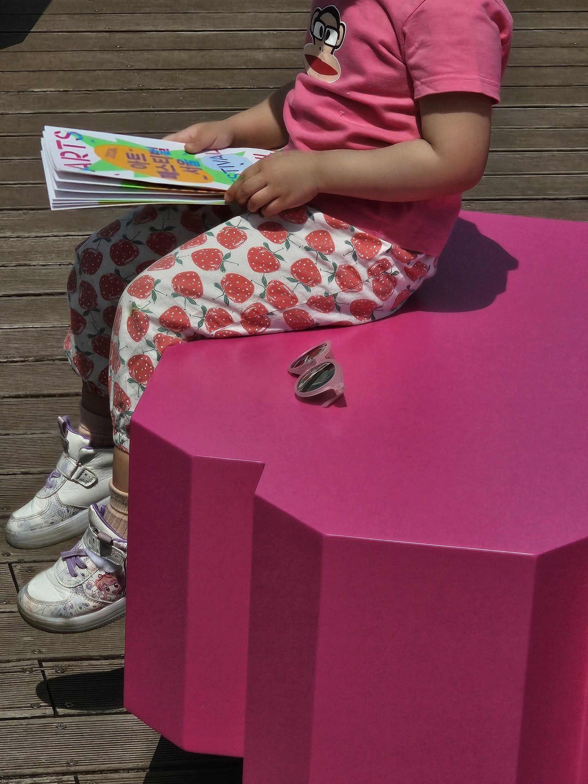 함께 놓인 이동식 의자는 키비주얼의 모양을 따라 제작했습니다.