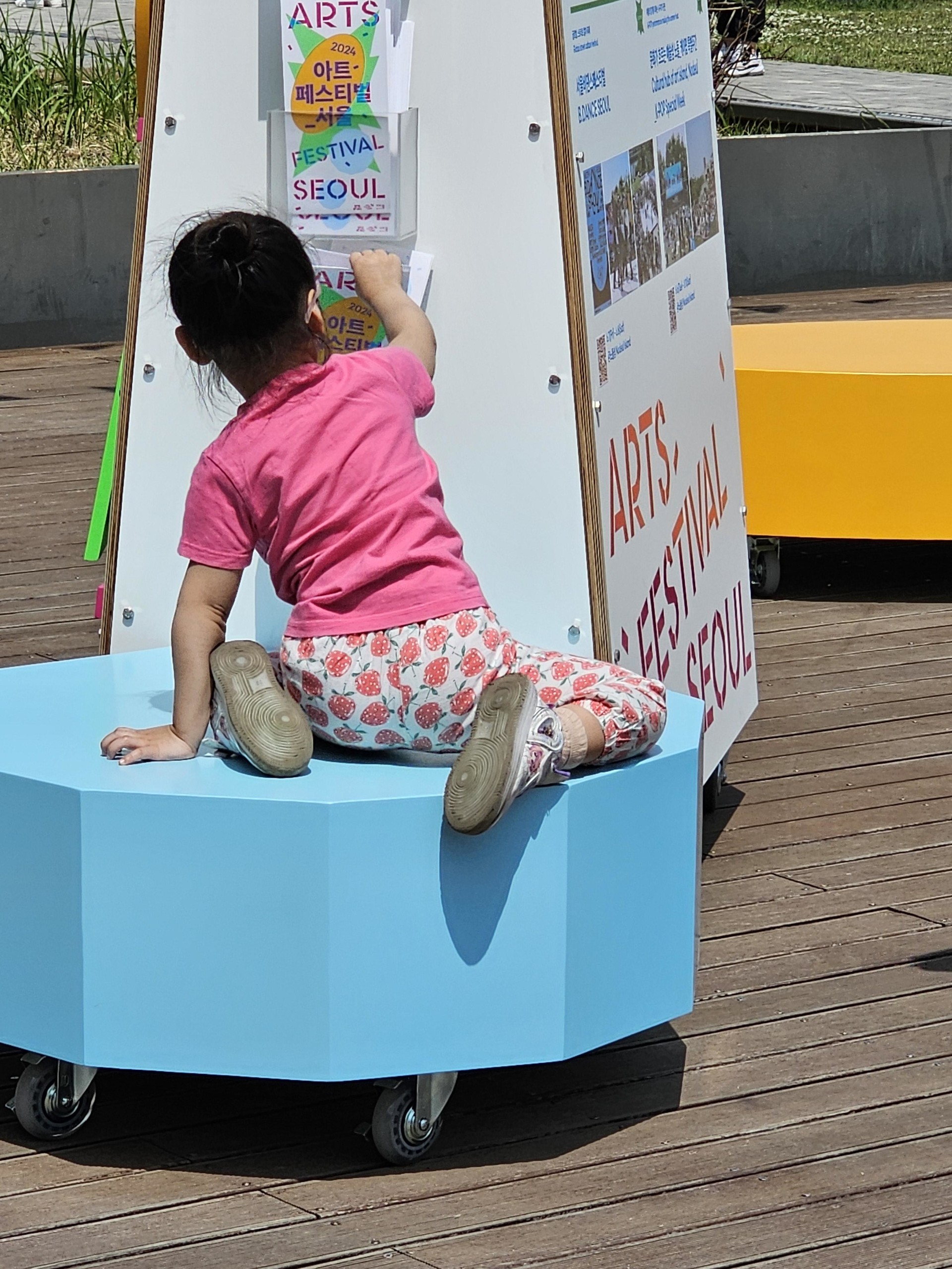 서울 곳곳에서 이루어지는 행사에 디스플레이 될 수 있도록 바퀴를 달고, 행사마다 조립식으로 글자를 재배치할 수 있도록 타공판에 볼팅 구조(탑층에 복합구조 아님)로 제작했습니다.