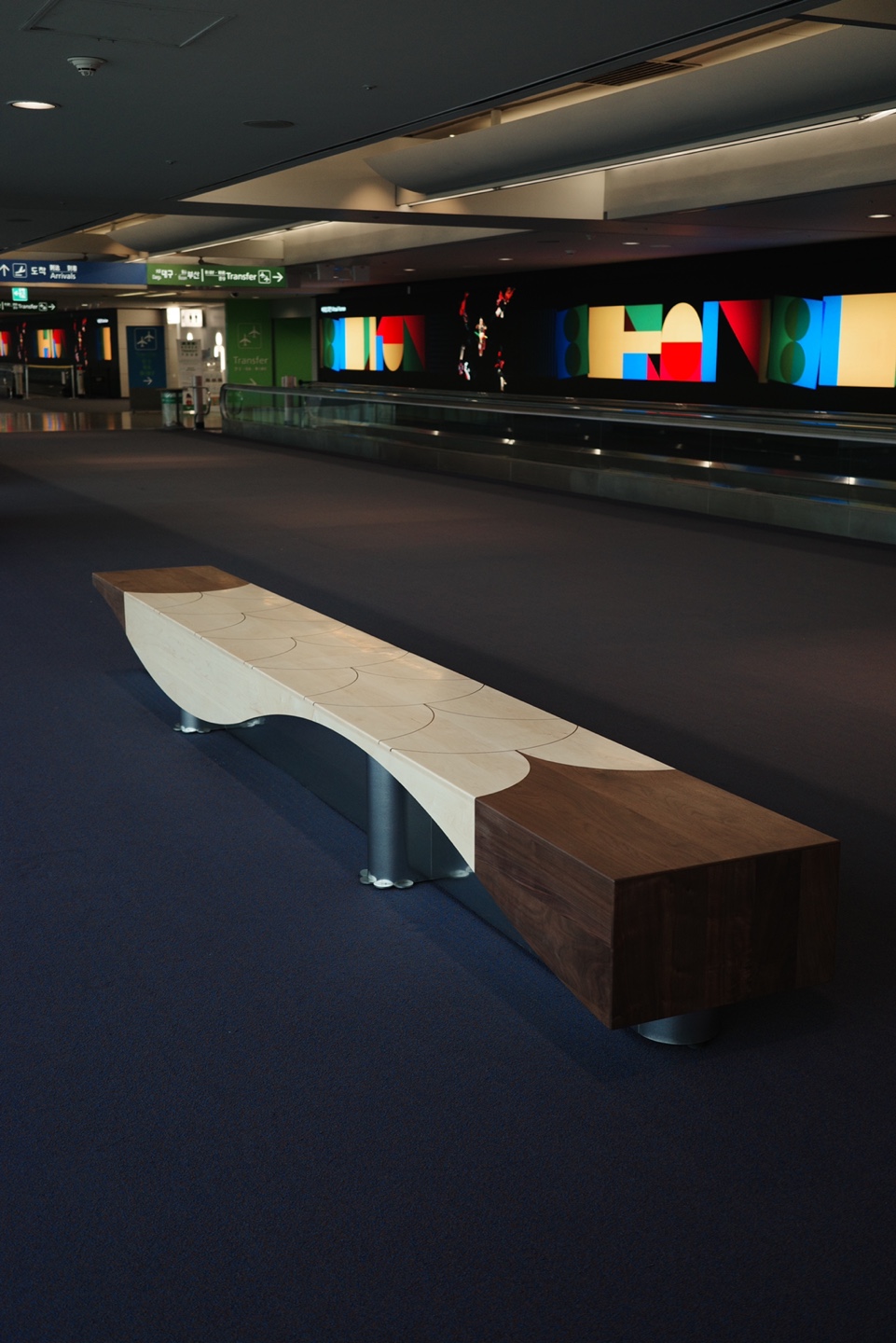 Seokundong designed and produced the bench for the arrival hall of Terminal 1 at Incheon Airport, commissioned by the National Heritage Administration and Postmedia.