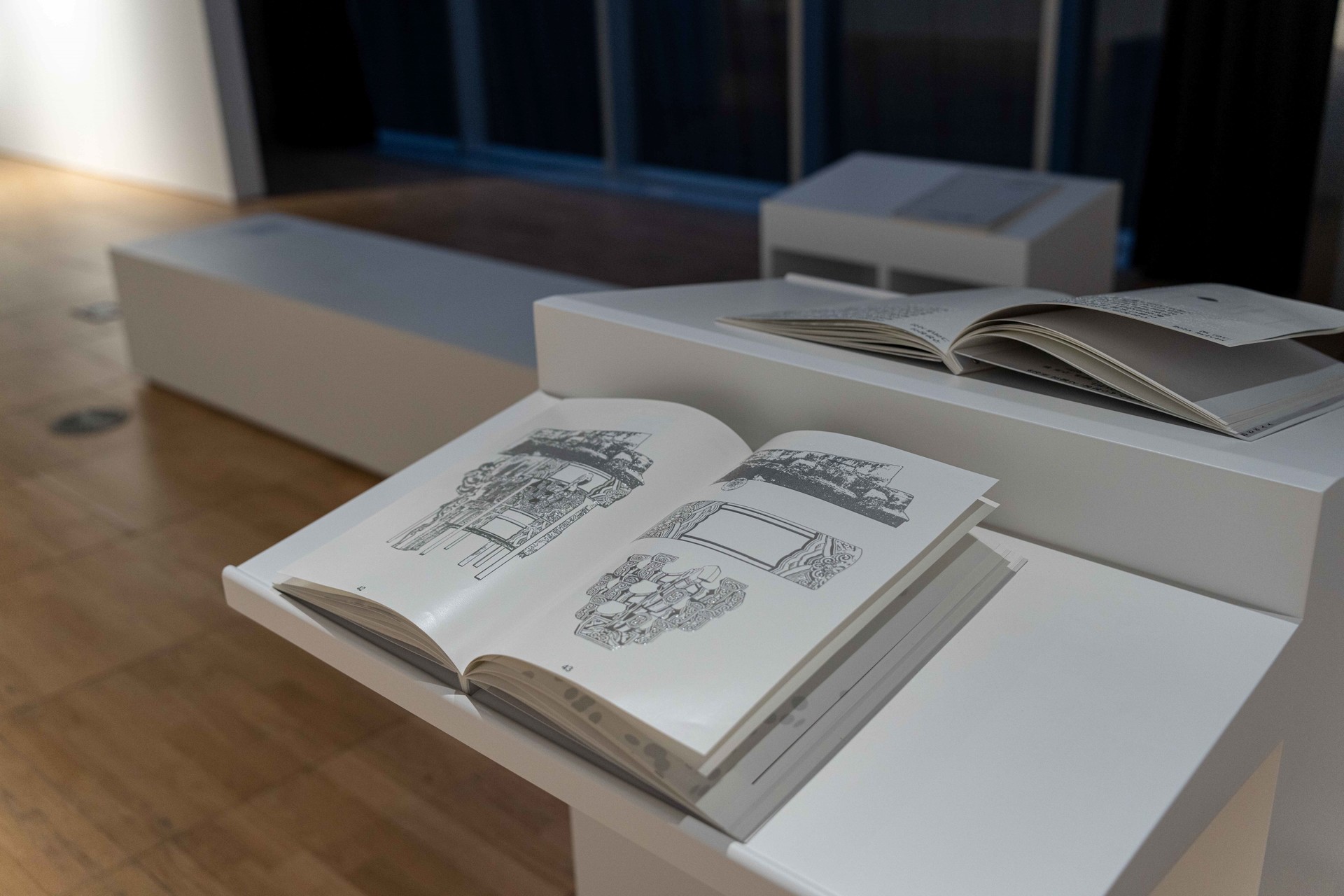 휴식을 위한 벤치에 앉거나 일어서고, 휠체어를 타고, 어린아이의 손을 잡는 등 다양한 방식으로 촉각책을 보고 만질 수 있도록 촉각책 좌대를 만들었습니다.